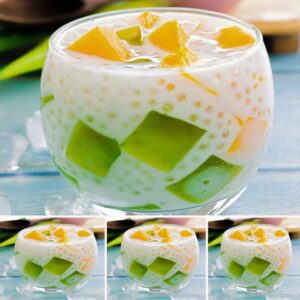 ตักสาคูใส่ลงในถ้วยกะทิอะโวคาโด